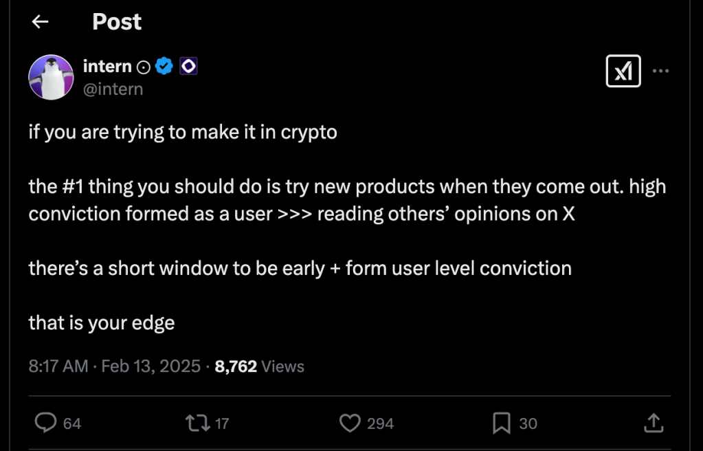 I saw a recent post by @intern on x.com